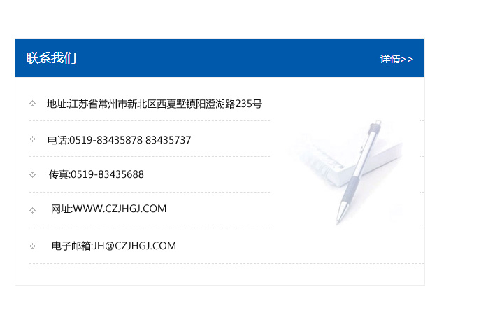 地址:常州市新北區(qū)友邦商務(wù)大廈1幢16、17層  電話:0519-85101652  傳真:0519-85112595  郵編:213022  網(wǎng)址:www_cz-jiayue_cn.tzseba.com  郵箱:xiajifengaa@163.com